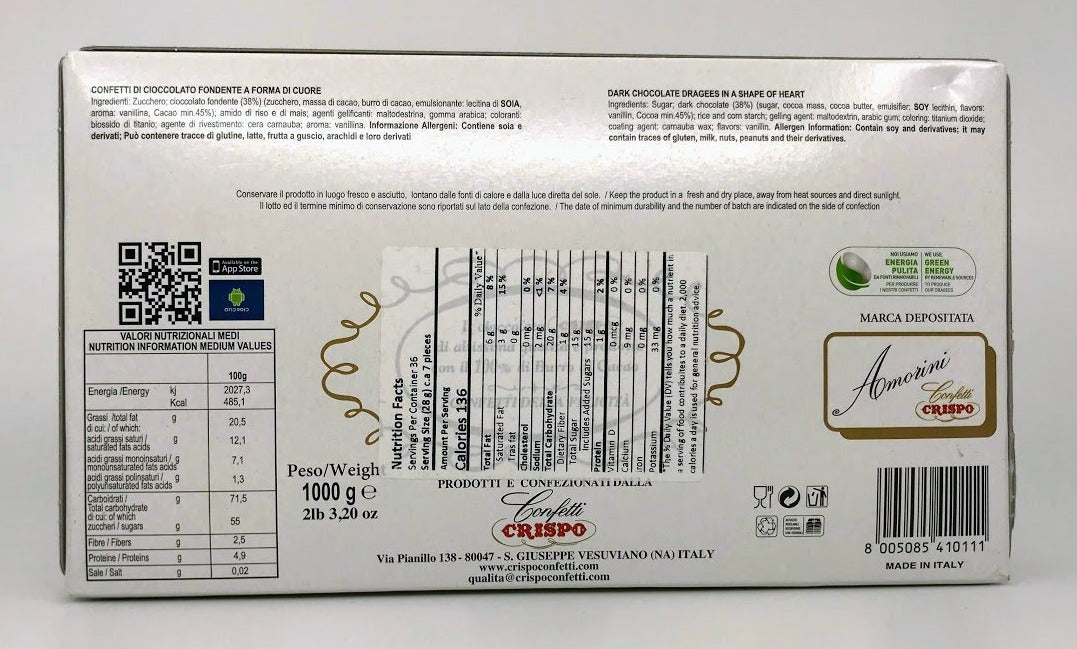 Confetti Crispo - Amorini Confetti filled with Chocolate - 2.2lbs (1 kg) - White